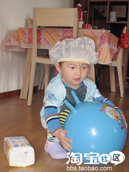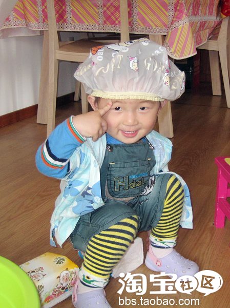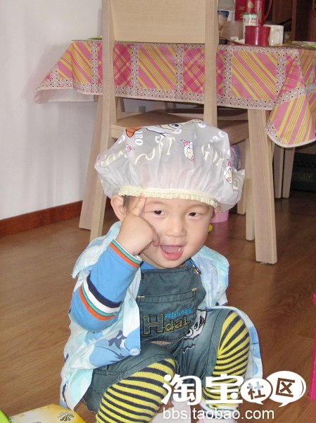 某天偶在家里翻箱倒柜时被偶看到这顶喜羊羊的浴帽了