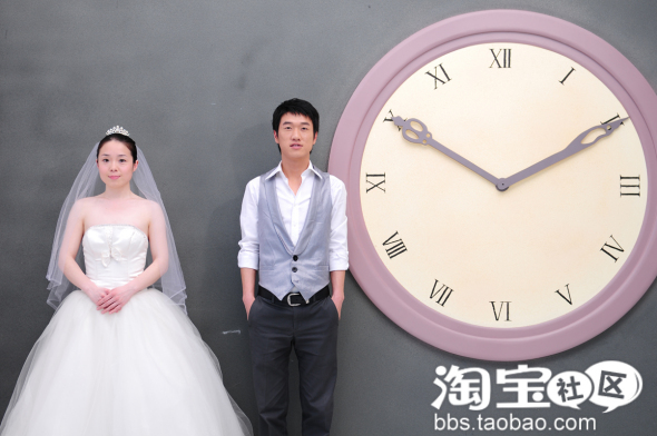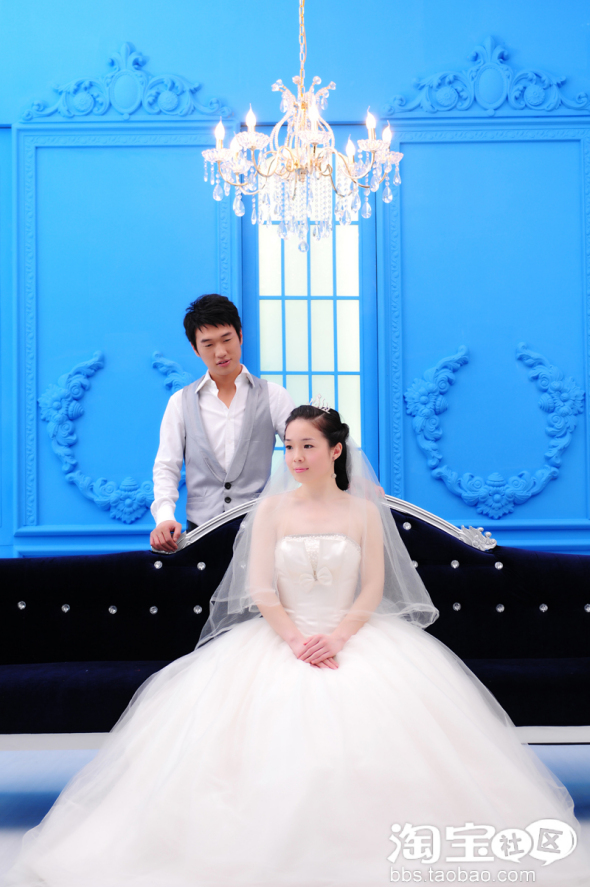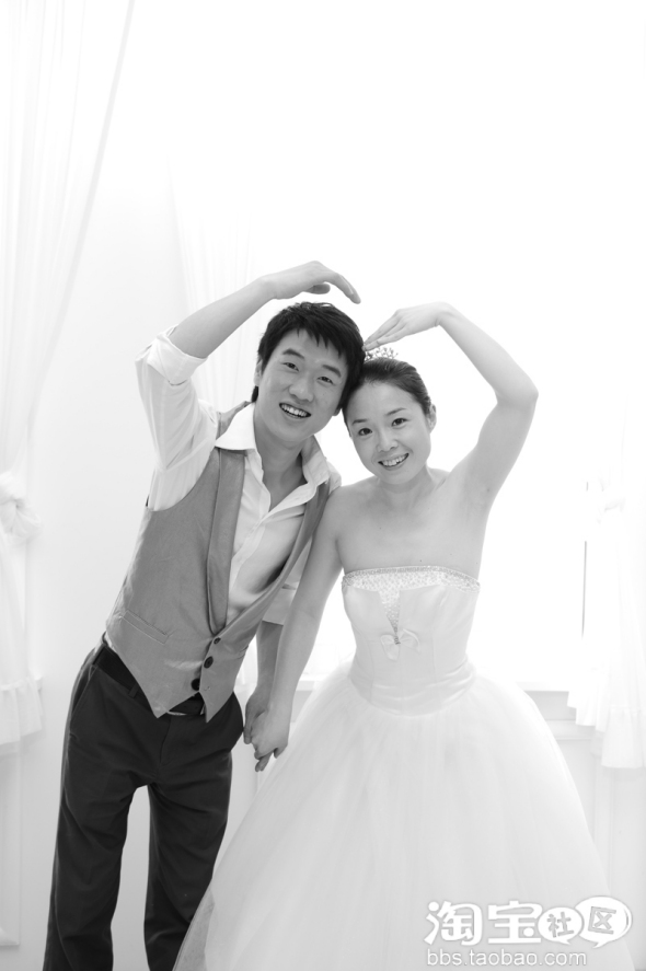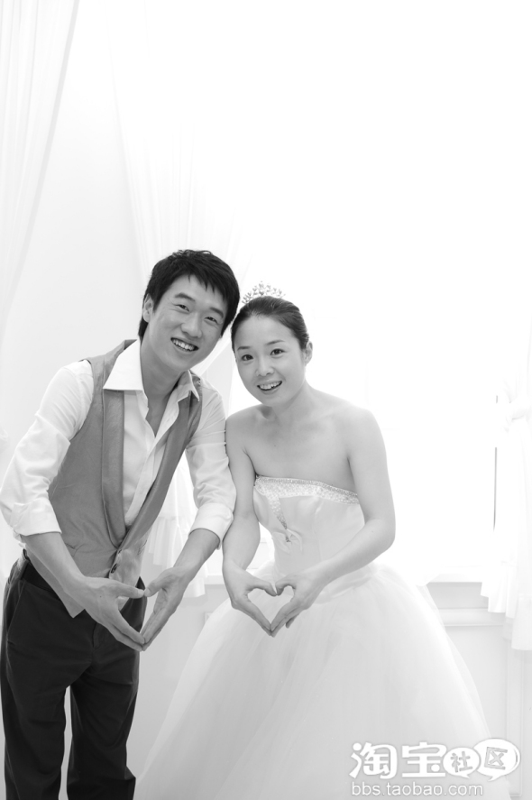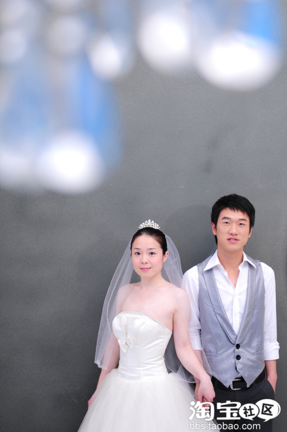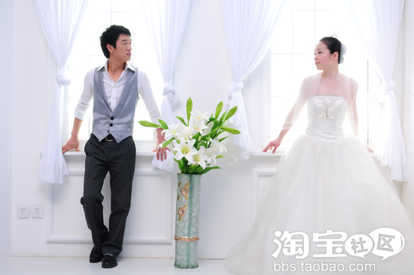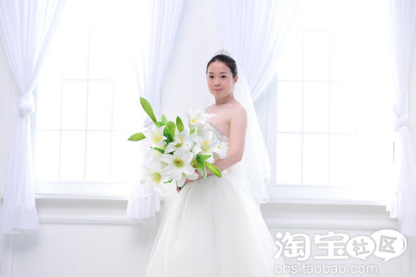 白色的背景拍出来很漂亮,很配婚纱的感觉