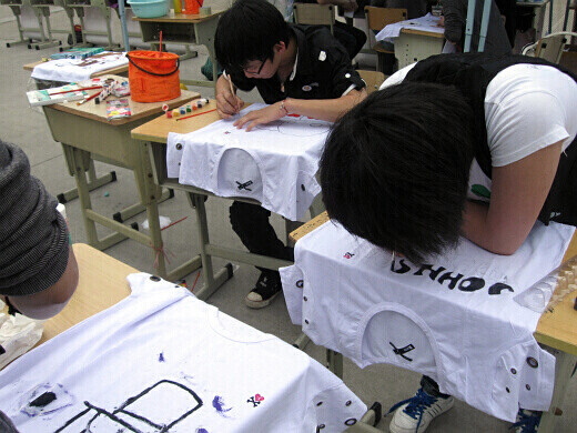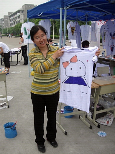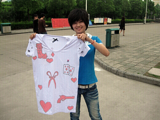 原来,老师有个异常喜欢涂鸦的儿子,她决定借七格格潮流T恤大赛这个资源自己画一件T恤,送给儿子