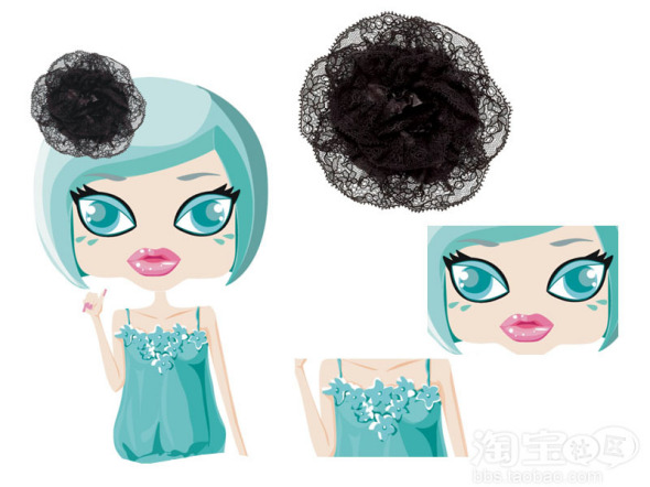 是一个大脸可爱的seaci头哇哈哈。。加上蕾丝袖子底边还有背部的修饰。