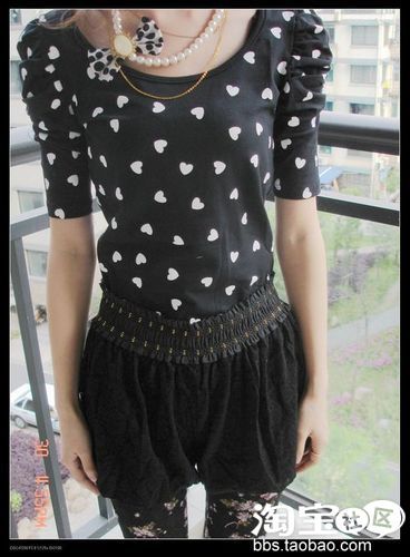 NO.3 爱心T+黑色蕾丝灯笼裤