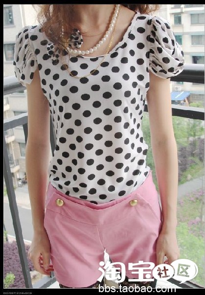 NO.2 粉色可爱短裤+黑色点点泡泡袖T