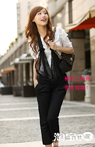 本帖的助威记录:助威总计 0 点 | 查看全部记录>>傲款耸肩泡泡袖雪纺衫,丝质柔滑,手感超好,搭配这条可拆卸吊带裤,相当的有韩范儿呀,腰部同色布质宽腰带,十足的女人味儿,雪纺的吊带部分可以修饰身材,让你显的更加高挑挺拔。跟着潮流走呀走