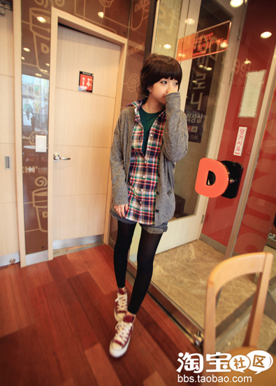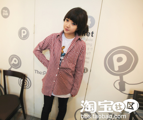 格纹衬衣,小个子女生也可直接当洋装穿,绝对俏皮可爱的形象