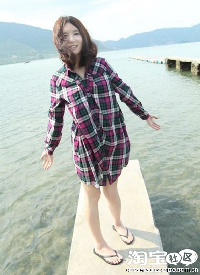 2、 经典格子衬衫+色丁柔软腰带,女人的曲线美一览无遗。
