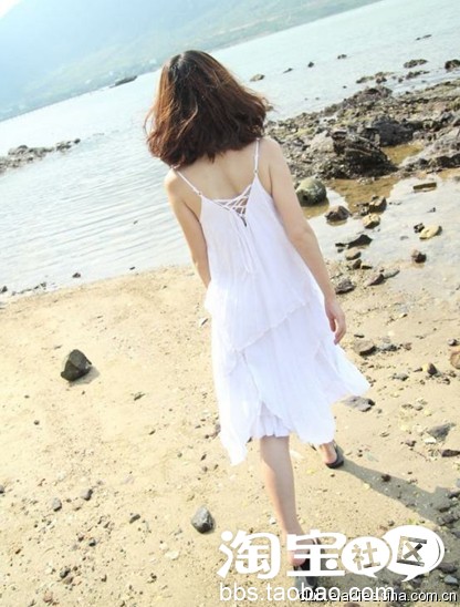 多层次飘逸的白色连衣裙,海风吹来,犹如天使般飞舞。