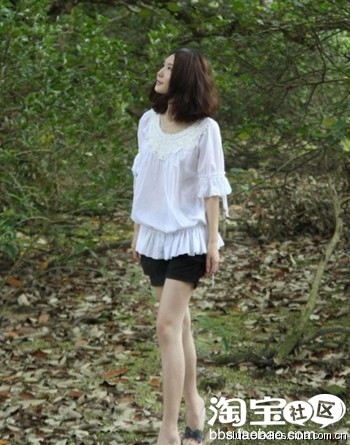 3、 甜美衬衫+性感短裤,在树林中穿梭,一副意境的美图浑然天成