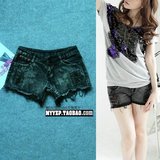 ¥32.80元实拍A608韩版女装2010新款磨破破洞牛仔裤牛仔短裤/热裤女款夏款