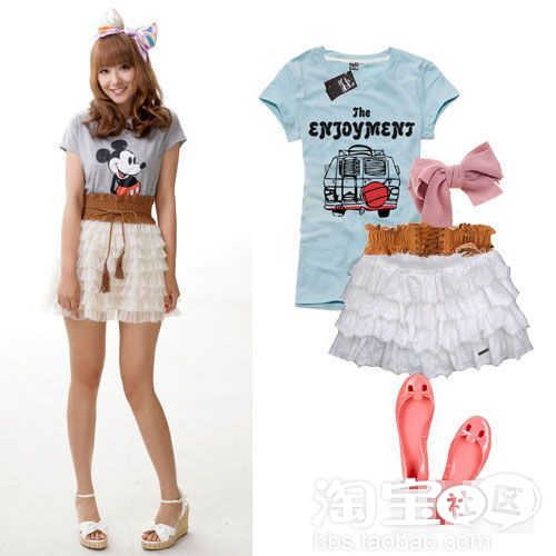 7, 搭配关键词:卡通T恤 蝴蝶结 甜美