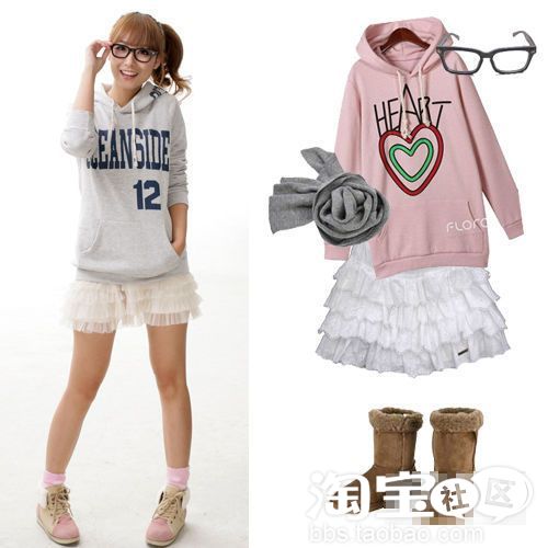 俏丽的短裙能很好展露你修长的大腿,因为是出游,所以上半身就选择了可爱的运动连帽衫,带上今年潮IN的有型框镜,整体效果看起来韩范儿十足哦