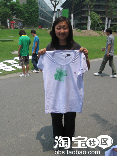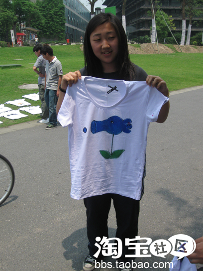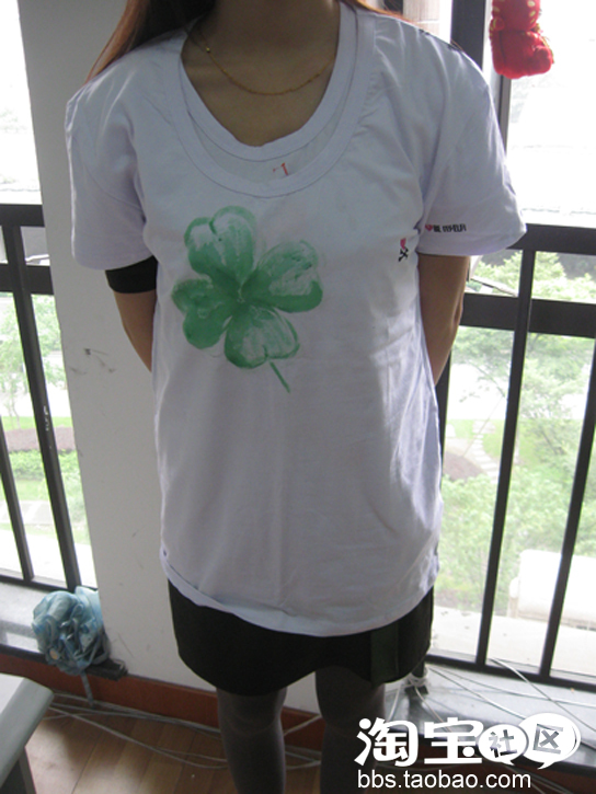 有点难看哦。。。好像小孩子画上去一样的。。色彩不协调呢,建议白色T+浅色颜色画画哟,这样可能会好看点。嘿嘿