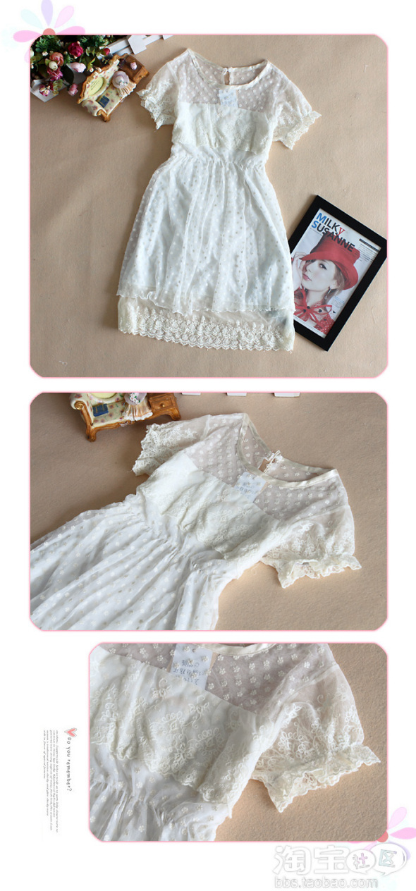 非常漂亮的一款蕾丝裙哦,当你穿上它,会误让人以为是不小心落下凡间的仙子,蕾丝裙几乎是每个MM抵挡不了的诱惑,你~值得拥有哦。~