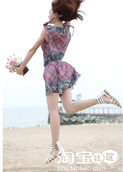 3、轻盈愉快的波普格纹,柔滑丝质感觉的雪纺富有运动的愉悦快感,格纹的经典和小性感豹纹图案的装饰很有味道,肩部抽带设计形成可爱又青春的背心裙,宽松的款式在腰部弹性收腰更加的显瘦,适合任何人穿着,搭配平跟鞋还是拖鞋,舒适又方便。