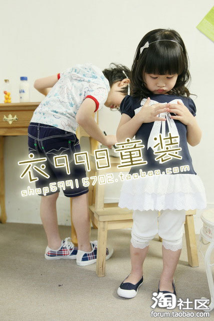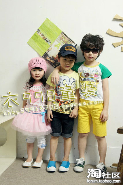小帅哥:米奇满版短袖T恤+直筒中裤!小美女:可爱装!