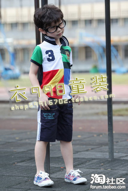两个小帅哥!后棉布短袖衬衫 2197+后袋笑脸中裤!