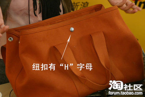 Hermès帆布手袋的手柄根部以及纽扣拉链都印有“H”字母