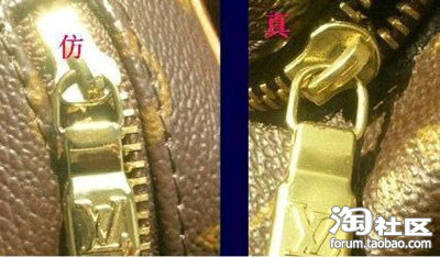 <仿品>拉链头没有字样外, 皮革是开岔的。