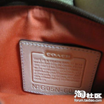 COACH的包包大部份皆有一个皮革产品编号及产地说明,此皮革的文字部份皆压印十分清楚,而仿的压印则十分浅字十分模糊,另外每个包包皆有一个独一无二的型。