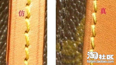 真品的刺绣手法细腻,缝纫密合度高,且型态显明,立体。伪品的刺绣手法粗糙,型态模糊不清且线密合度低.