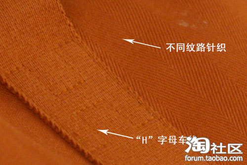 在Hermès帆布包手柄的地方也可以清楚的看到一个“H”的字母织花,由于是在织布过程中一次完成,所以造价比织好布料再手工刺绣还昂贵。如图这款Hermès手袋的金属拉链上都印有“H”字母,不过这不能作为辨别真假爱马仕的最重要因素,因为在1965年前,有些Hermès产品并没有印有“H”字母。