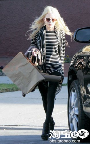 点评:Ashlee Olsen狂爱中性装扮,条纹的简约感被她演绎增添几分朋克的慵懒,搭配简洁的长袜和短靴,如此简单,而又帅的一塌糊涂。