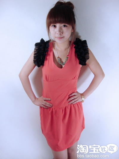 这款吧?这是我最喜欢的裙子。一款橙色很靓丽的连衣裙。
