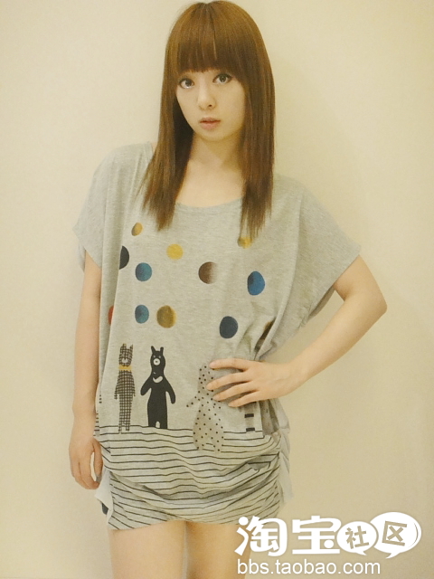 日本原单cantwo~渐变色彩圆点~多种色彩/形状的小熊~下摆两侧有褶皱~宽松轻薄款~蝙蝠袖~正面是棉质~背面是雪纺~有些小小性感^_^喜欢的MM不要错过哦O(∩_∩)O~