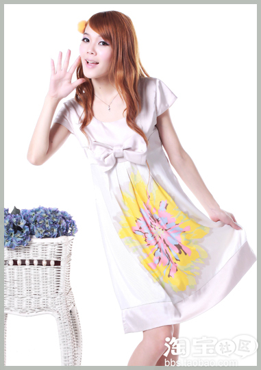别出心裁的高腰裙设计,悄悄把你的小肚子隐藏起来,波西米亚风格的淡黄色印花,更突显你的异域民族风情。胸间的蝴蝶结,顿时为你的俏皮指数加分。