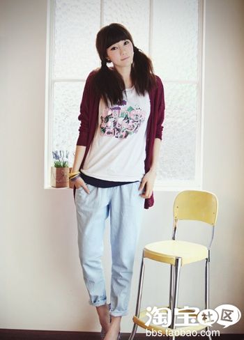 在假日时,T恤与仔裤是大家最常选择的搭配。O型腿与X型腿的MM们同样要注意,最好选择宽松式的牛仔九分裤,将裤腿随意挽起,更能显腿直。