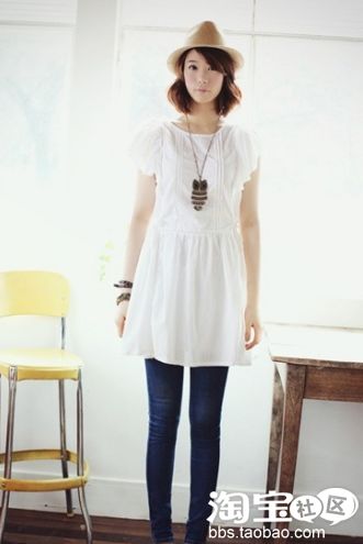 这种一直延伸到腰部的荷叶边能将我们略粗的大臂都挡住,还不会觉得热。用蝴蝶式的剪裁使上半身呈“倒三角”状,还能更显纤细腰身,特别是搭配一条腰带后,整体的身形更加明显。但是需要注意的是,这种剪裁不适合肩宽的MM穿着。