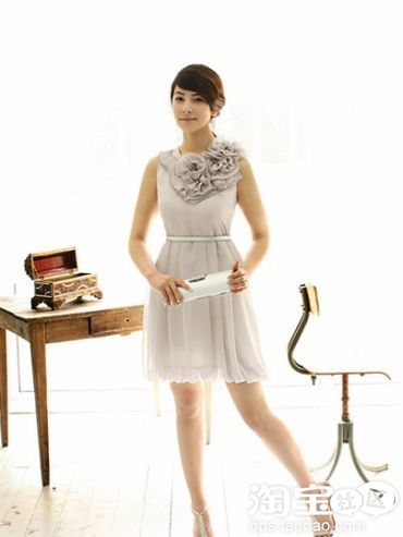雪纺连衣裙是春夏的主流,花团锦簇的胸前装饰不显庸俗还很优雅,原因就是采用了与连衣裙同色的淡紫色。轻薄的面料同样很难有造型感,于是细细的腰带又可以派上用场了。