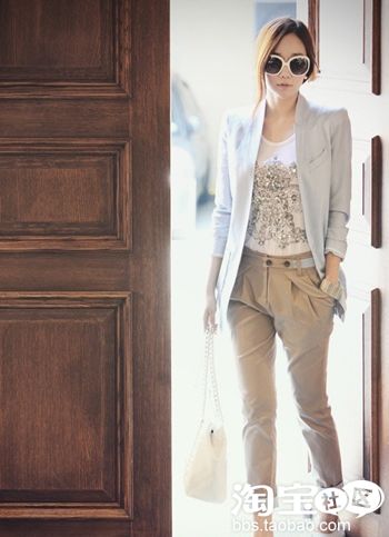用褶皱与挽边掩饰过细的腿型也是不错的办法,搭配宽肩西装,让娇小感立刻消失,变身优雅的办公室OL。