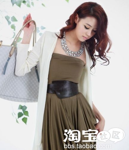 抹胸长裙凉快又舒适,在外面搭配一件白色小薄衫,非常适合夏天的白领穿着,只是抹胸带有一些“危险性”。用宽腰带将上半身与垂坠的长裙摆分割开,能避免在行走中裙子下坠走光,还能将曲线突显出来。