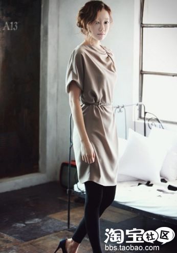 宽松的“蝙蝠式”T恤裙很容易显得太随便街头,搭配一条银色腰带,松松的挎在腰部,上下比例立刻显出,也不会显得过于古板。
