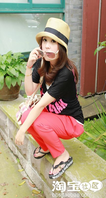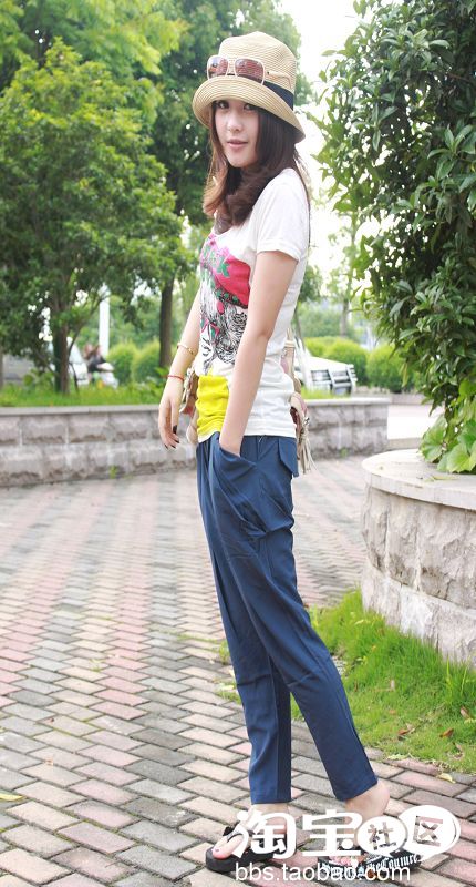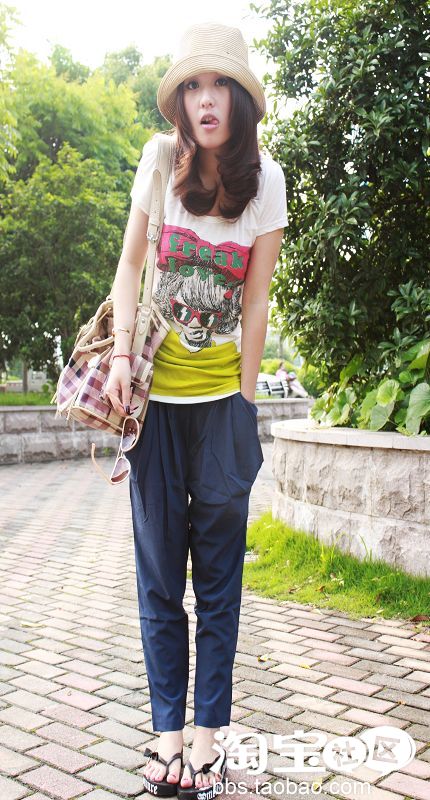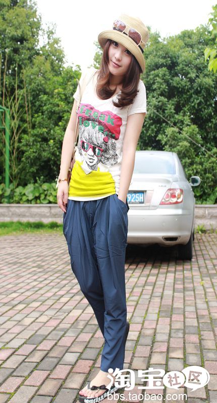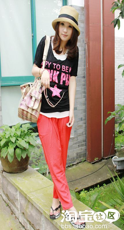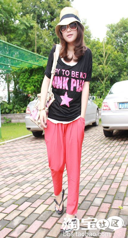 NO4。超级无敌双口袋设计雪纺哈伦裤+T恤