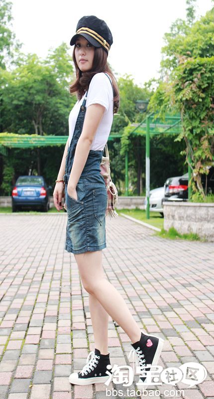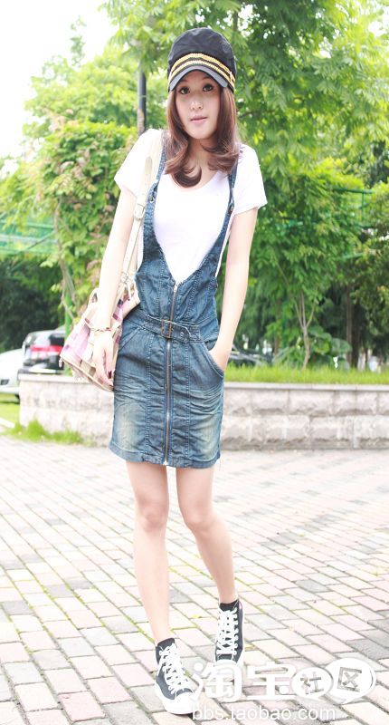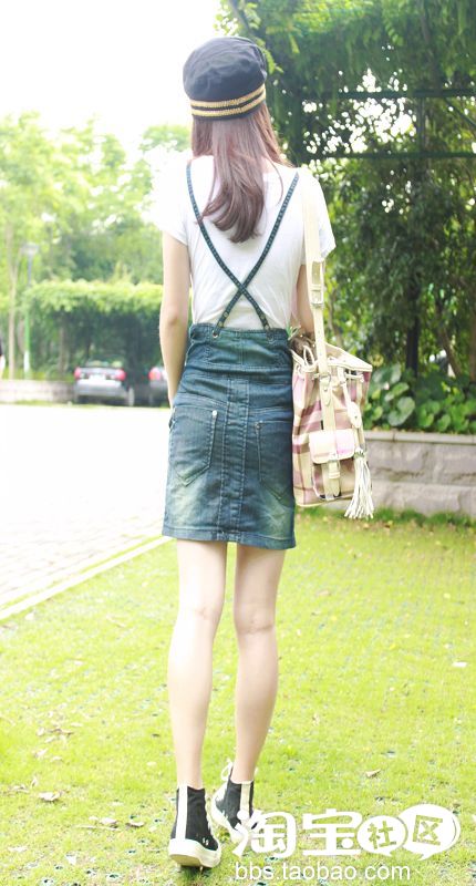 NO3.版型超级好的水洗拉链牛仔背带裙 纽扣调节设计