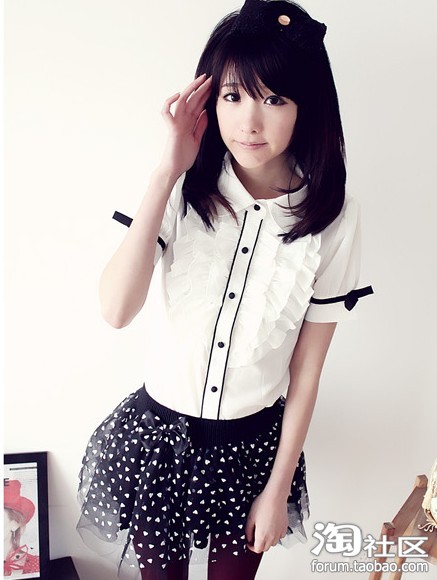 雪纺系领结的衬衫穿上很有学生妹的感觉,纯洁可爱,