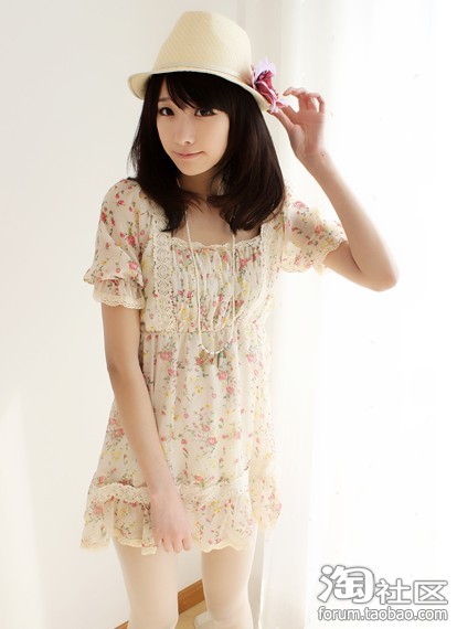 5.碎花连衣裙+打底裤+小礼帽 打造优雅田园风