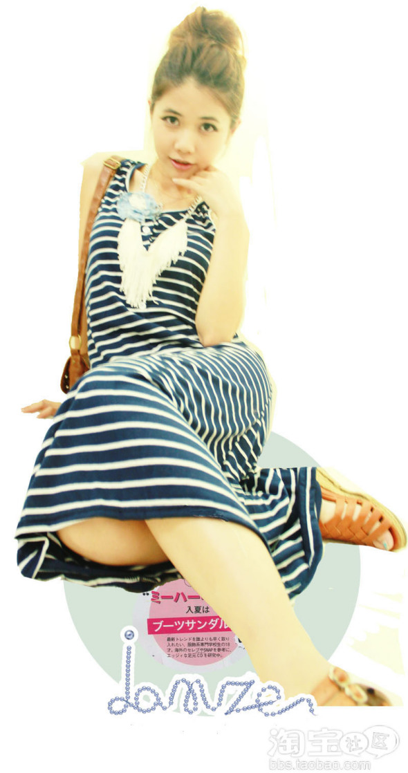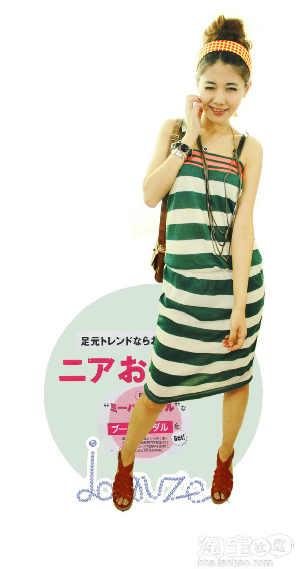 海军条纹裙+复古小背包+罗马小坡跟+波点小绑带打造海边休闲度假的小公主···