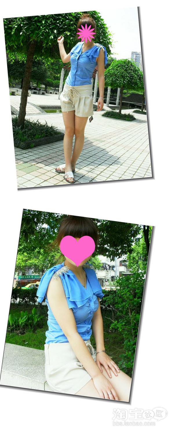 所以当时就买了这件类似雪纺的上衣配条短裤看起来也蛮OK的。。