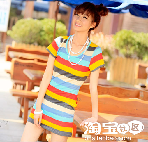 时尚百搭摩登彩虹条连衣裙 低调中透露炫目动感的都市魅力