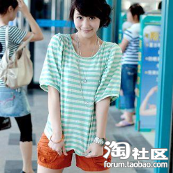 条纹T恤一直是经典不败的款式,百搭,易于搭配,怎么搭都是不错的。