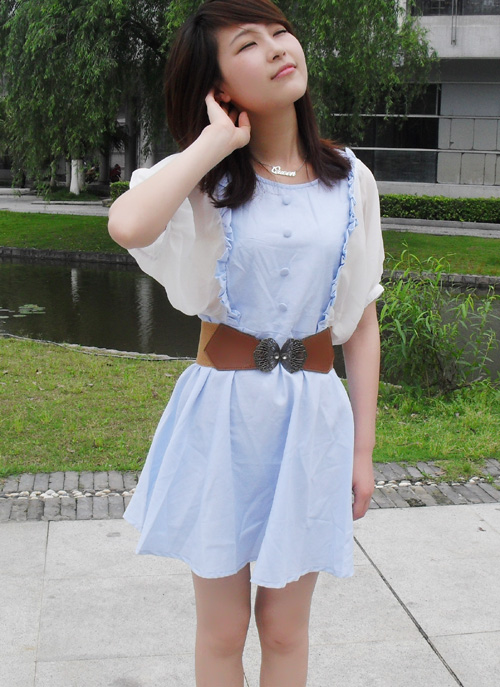 今年很流行这样的耸肩西装料的连身裙哦。很修身材,很显瘦