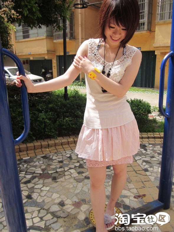 4. 玫瑰花朵小吊带+可爱皱褶群,打造一个淑女风小公主。