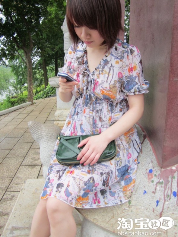 雪纺让人一眼就有种飘逸的感觉。加上小巧的手提包包。