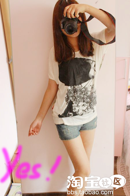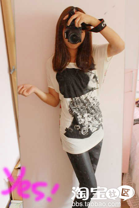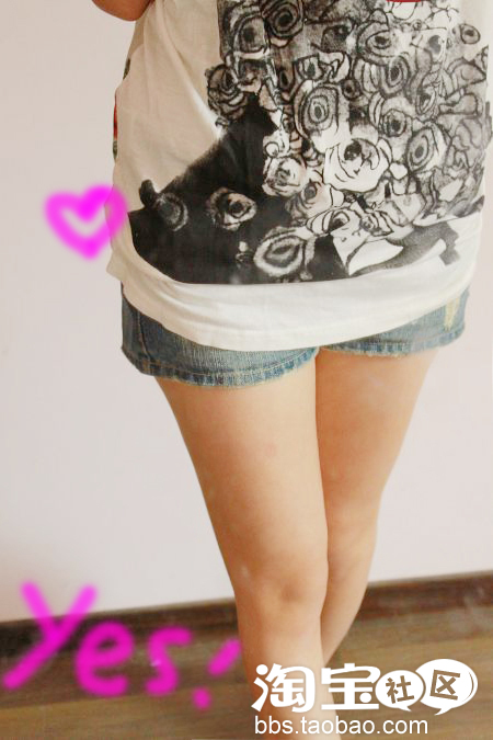 关键的关键哦!穿宽松或者是中长款的T的时候,一定要打折折穿哦,千万不要拉的直直的呢