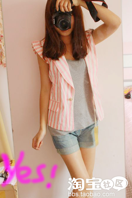 不要以为这样在飞袖里穿个短袖T更显得膀子细,其实错了,这样更加明显了自己的弱点