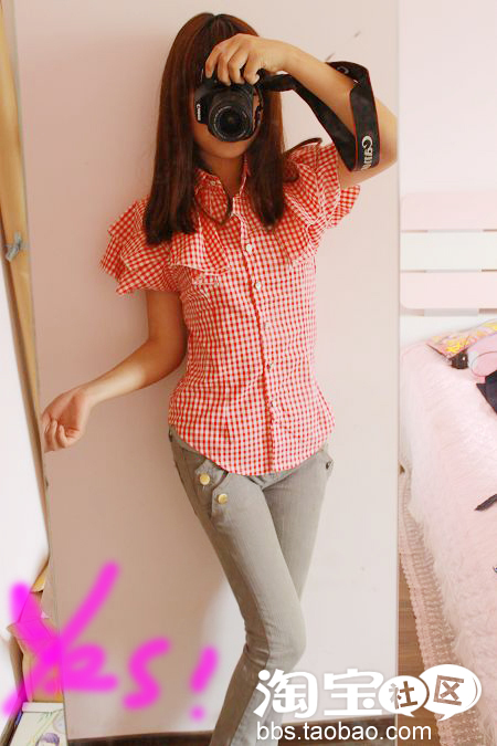 又见飞袖,而且是很大的飞袖,显膀子瘦是不用说的了,但是这样的格子的图案虽然好看