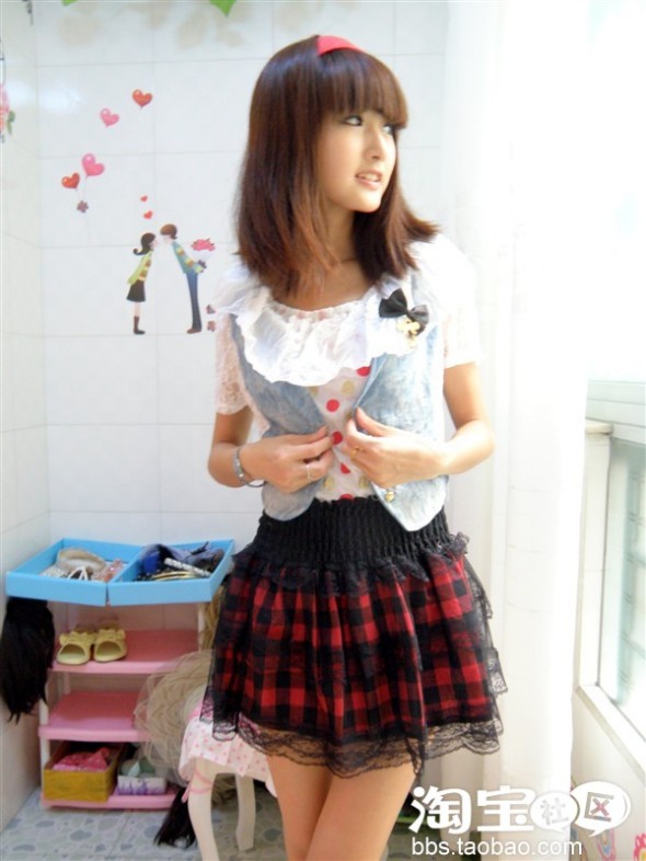 红色格子 外加一层黑色的纱 小轻佻 小情调
