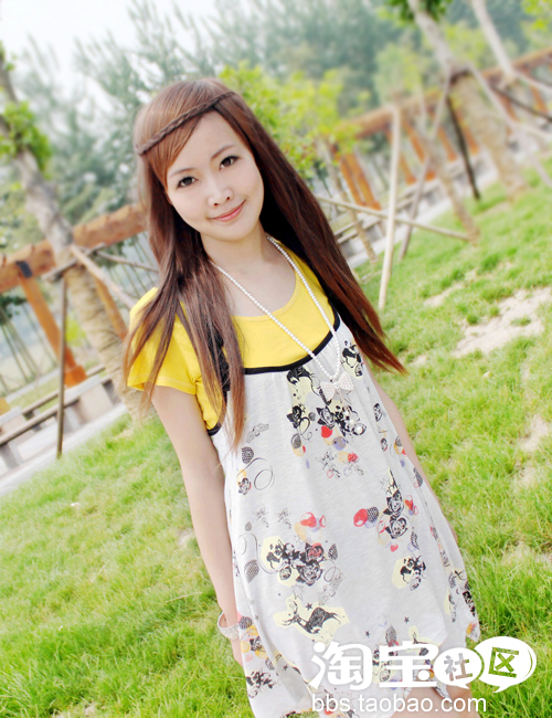 八、卡通T+糖果色短裙+人字拖,打造甜美邻家女孩